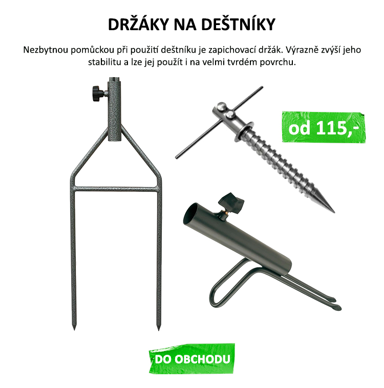 Déšť nás nezastaví! Velký výběr deštníků nejen pro rybáře.
