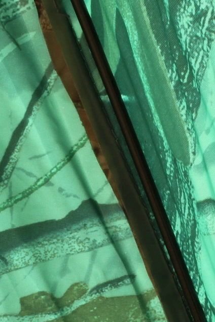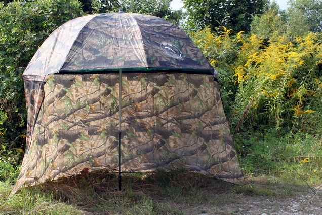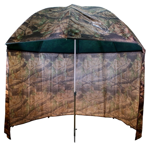 Deštník s bočnicí je ideálním přístřeškem při krátkodobých vycházkách k vodě. Je určený pro ochranu před sluncem, rosou a deštěm. Na výrobu kopule a boční stěny byl použit materiál nylon s PVC krycí vrstvou, čímž získává deštník podstatně vyšší stupeň nepromokavosti. Švy deštníku jsou přelepeny voděodolnou páskou pro zajištění nepromokavosti. K dispozici je boční, prodloužená stěna, která se upevňuje pomocí zipu kolem kopule. Spodní část boční stěny je osazena úchyty pro připevnění k zemi pomocí zajišťovacích kolíků (kolíky jsou součástí dodávky). Zipy jsou plně překryty kusem látky pro zajištění jejich nepromokavosti. Deštník disponuje možností nastavení výšky a sklonu kupoly. Barevné provedení je kamuflážové.