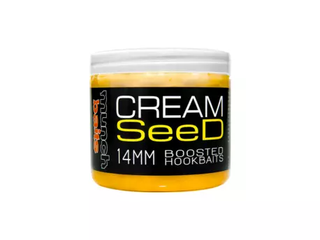 Vysoce koncentrované dipované boilies Cream Seed Boosted Hookbaits připravené k okamžitému použití ve vylepšené formuli zajišťuje mocnou a okamžitě atraktivní nástrahu. Díky rafinovaným proteinům disponují super tuhou slupkou, která zajistí obranu proti nežádoucím rybám, přesto zůstávají rozpustné.