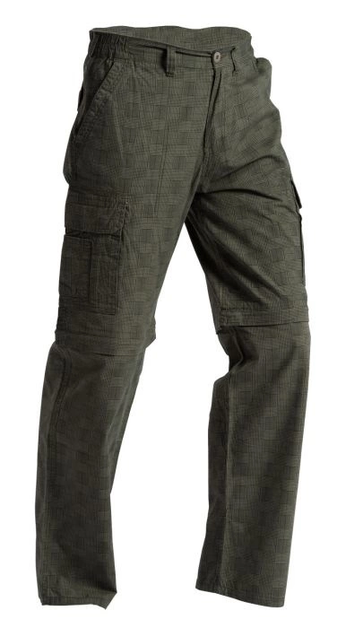 Jsou vyrobené z příjemného, lehkého materiálu s mnoha kapsami a třírozměrným střihem v oblasti kolen, vhodné na ryby i k běžnému nošení. Velká nabídka velikostí M-6XL.