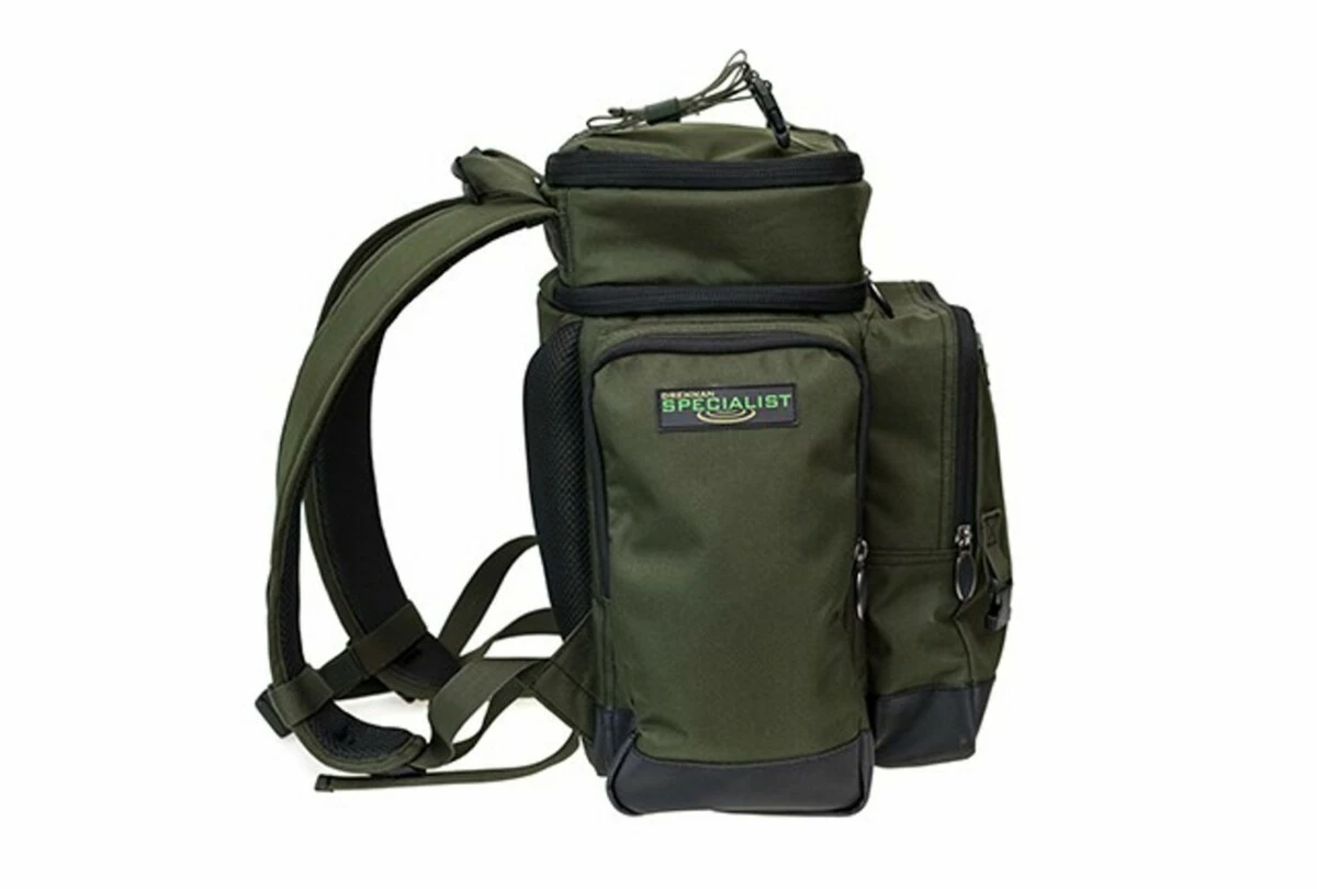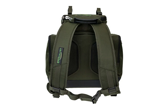 Specialist Compact Rucksack je určen pro mobilního rybáře, který rád vynakládá minimum úsilí při přepravě svého náčiní k vodě. Batoh je vyroben z odolného a trvanlivého materiálu 600D se zpevněnou vodotěsnou základnou. Batoh má tři externí kapsy na zip spolu s horním oddělením s fólií, které je ideální pro ukládání návnady a dalších předmětů.Vnitřní část batohu je vycpaná a také má vnitřní kapsu na zip na spodní straně víka. Pro větší pohodlí jsou zadní a ramenní popruhy polstrované a tvarované aby zajistily maximální pohodlí při chůzi. Batoh je také vybaven polstrovanou rukojetí a výsuvnými popruhy na horním okraji batohu, které drží předměty jako např: voděodolný přehoz, plášť, bundu atd...Další úchvatná malá vlastnost je doplnění dvou svorek, které umožňují bezpečně připevnit na batoh podložku pod ryby Compact Unhooking Mat Specialist.K dispozici ve dvouch variantách 30 litrů a 40 litrů. Vlastnosti: 40 litrů kapacita kompaktní design Vyrobený z odolného a trvanlivého materiálu 600D Zesílená vodotěsná základna Polstrované zadní a ramenní popruhy Nastavitelný popruh na hrudníku Rozšiřitelné popruhy Tři vnější kapsy na zip Rozměry: 45 cm (H) x 45 cm (W) x 30 cm (D)