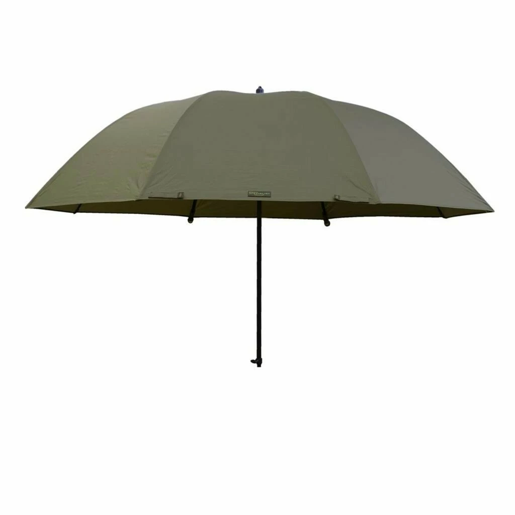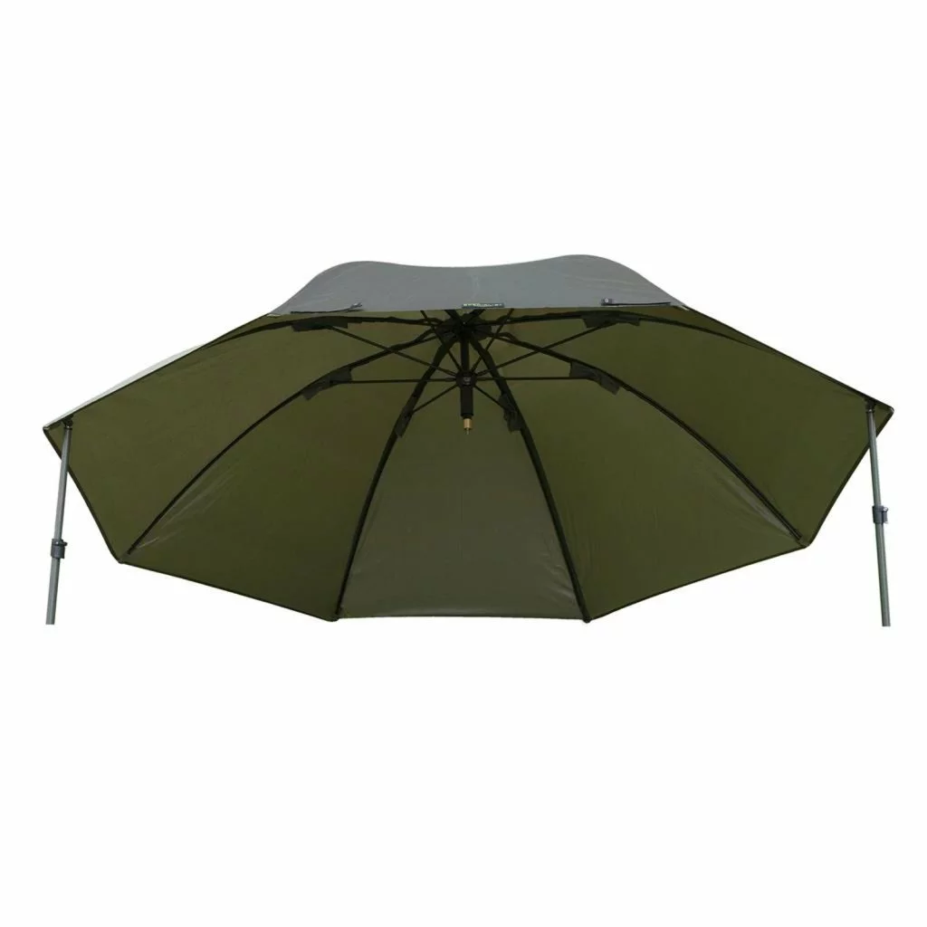 Praktický deštník o velikosti 110 cm v olivově zelené barvě. Je vyroben z odolného polyesteru potaženého polyuretanem, má podlepené švy pro ochranu před jakýmkoliv počasím a dá se naklonit do tří pozic. Zajišťovací kroužky na zadní straně deštníku umožňují jeho upevnění ve větrných podmínkách a dvě boční žebra mají závitové uchycení pro tyče, takže střední tyč lze vyjmout pro maximální prostor a pokrytí. Součástí jsou také dva suché zipy pro zajištění vašich prutů a každý deštník je dodáván ve vlastním stahovacím vaku se dvěma zemními kolíky a 3m kotevním lanem. 44” váží 2,54 kg a 50” váží 2,8 kg (bez kolíků a tašky)