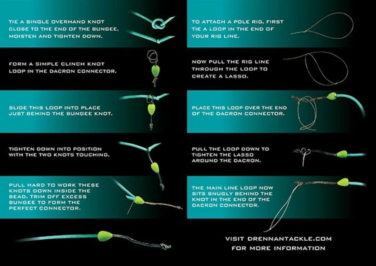 Guma na děličku od Drennanu je tubulární, má dvojité stěny s dutým jádrem jejichž zevnějšek je vysoce fluorescenční.Má vynikající pružnost, roztahuje se mnohem dále a déle než pevná latexová elastika. Bungee pracuje velice dobře s táhly a sýstémem bočního vytahování.