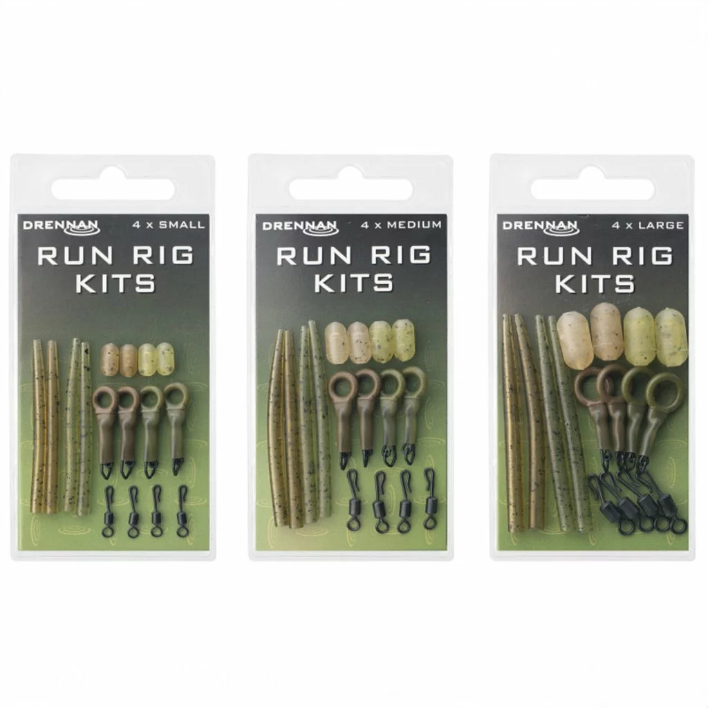 Drennan Run Rig Kits - sada obsahuje vše potřebné k vytvoření bezpečné a efektivní montáže při lovu s krmítky nebo olůvky. Montáž je složená z rychlovýměnného obratlíku, gumové zarážky, silikonového převleku proti zamotání a kroužku s rychlovýměnou karabinou. Run Rings je kroužek s rychlovýměnnou karabinou a je ideální k použití krmítek a olov. Vyrábějí se ze super hladkého polymeru s tvrdým povrchem, který krásně klouže po vlasci, sponka se snadno otevře a je maskována přesně upravenou délkou silikonové hadičky, aby se zabránilo zamotání. K dispozici ve velikostech: Malý (small) Střední (medium) Velký (large) Balení obsahuje: 4x silikonové převleky proti zamotání (2x zelené / 2x hnědé) 4x kroužky s rychlovýměnou karabinou (2x zelené / 2x hnědé) 4x zarážky (2x zelené / 2x hnědé) 4x rychlovýměnný obratlík