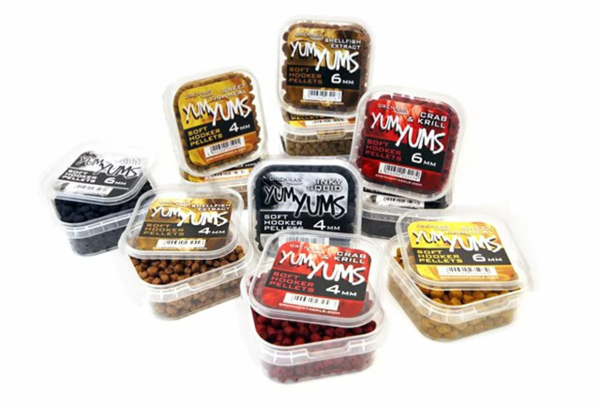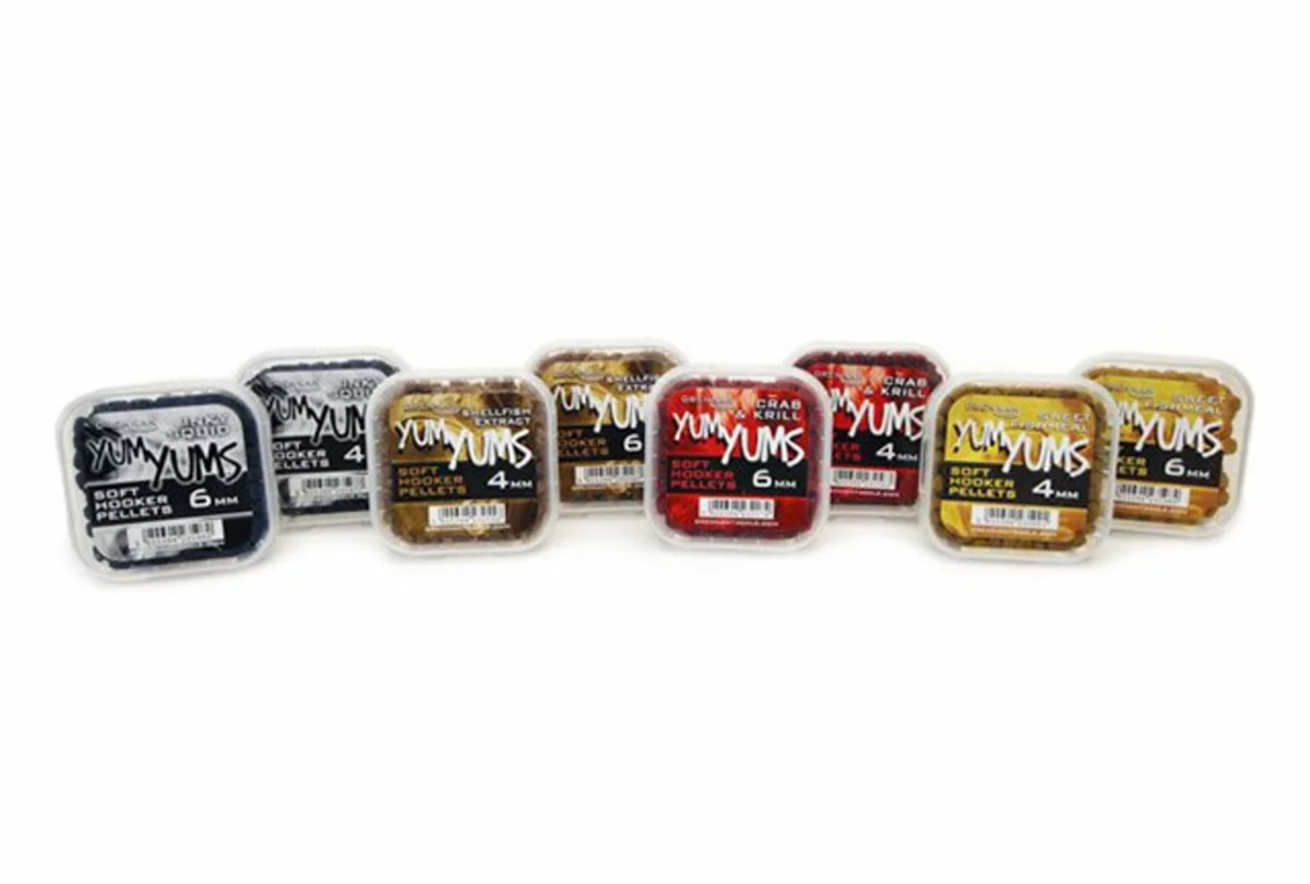 Firma Drennan strávila značné množství času na vývoji a testování chytacích peletek s tou správnou konzistencí a atraktivností. Yum Yums jsou měkké, ale přesto dostatečně odolné, aby držely na háčku. Jsou ideální násttrahou na plavanou a feeder. Obě velikosti (4mm a 6mm) jsou ideální pro nastražení přímo na háček, zatímco ty větší jsou perfektní i pro nastražení na vlasový přívěs. Jedná se o ideální nástrahu na kapry, líny, karase a cejny. Ryby prostě Yum Yums milují! • Měkké chytací peletky • K dispozici 2 velikosti (4mm a 6mm) • 6mm peletky mohou být také nastraženy na vlasový přívěs • Ideální nástraha při lovu na plavanou a na feeder • Boosterovány osvědčenými rybími atraktory • Ideální na kapry, líny, karase a cejny