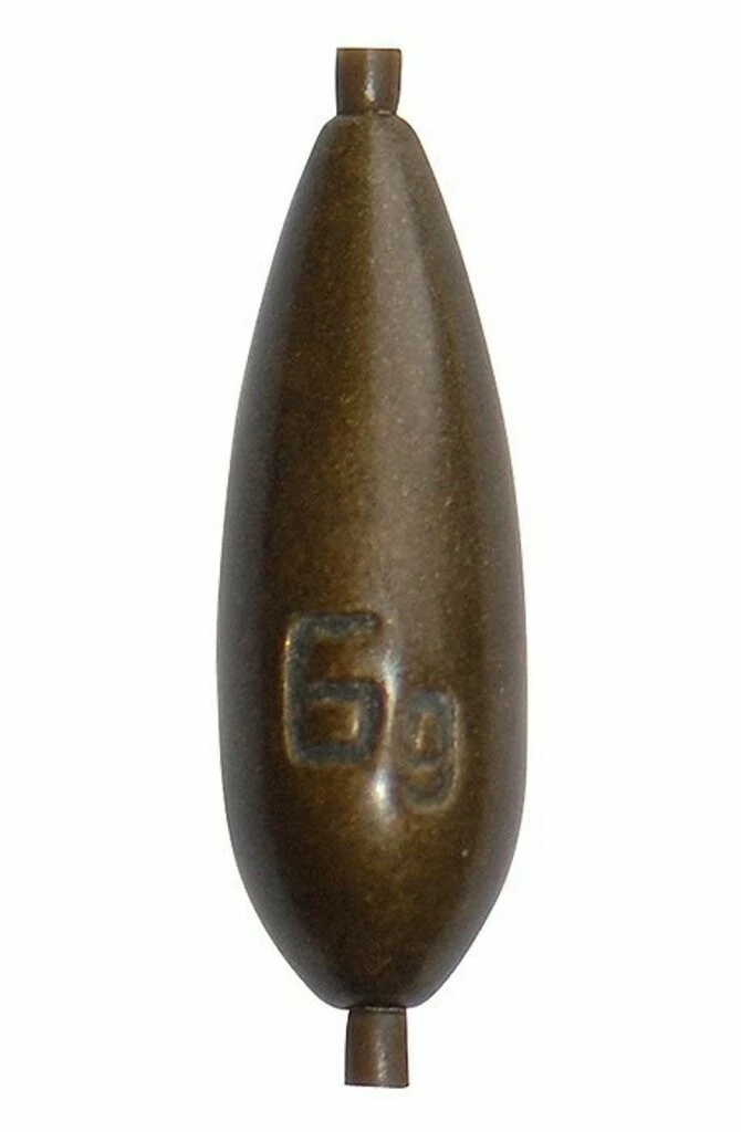 Klasické průběžné torpily ve tvaru olivky určené k dovážování splávků. V matně bronzové úpravě.