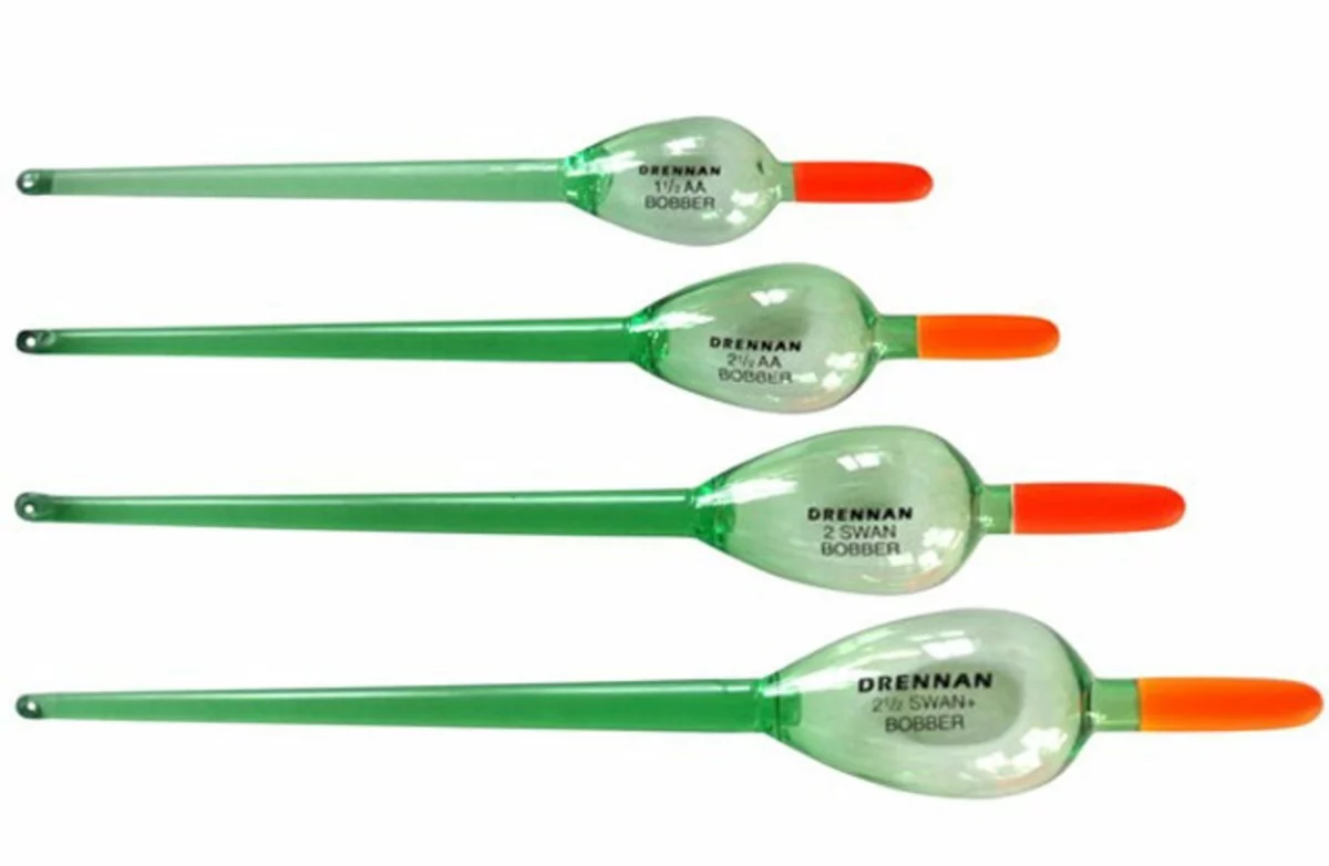 Drennan Bobbers jsou populární, jejich konstrukce může být použita na všechno od chytání okounů na červy na jezerech po lov lipanů na mělkých řekách. Jedná se o tradiční konstrukci, která byla původně vyrobena z korkových a balzových materiálů. Moderní verze má lehké, plovoucí, tvarované tělo a tvrdou plastovou stopku pro dobrou stabilitu. Tyto splávky jsou nejlépe připojeny nahoře a dole silikonovými bužírkami. K dispozici v: 1.5AA (1.2g), 2.5AA (2g), 2 Swan (3.2g), 3 Swan (4.8g) vysoce vzlínaví, nenápadný, schopný nést velké nástrahy, zelený odstín.