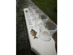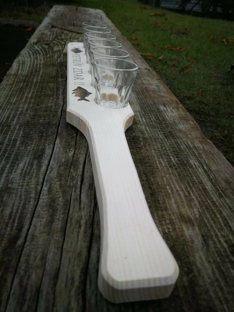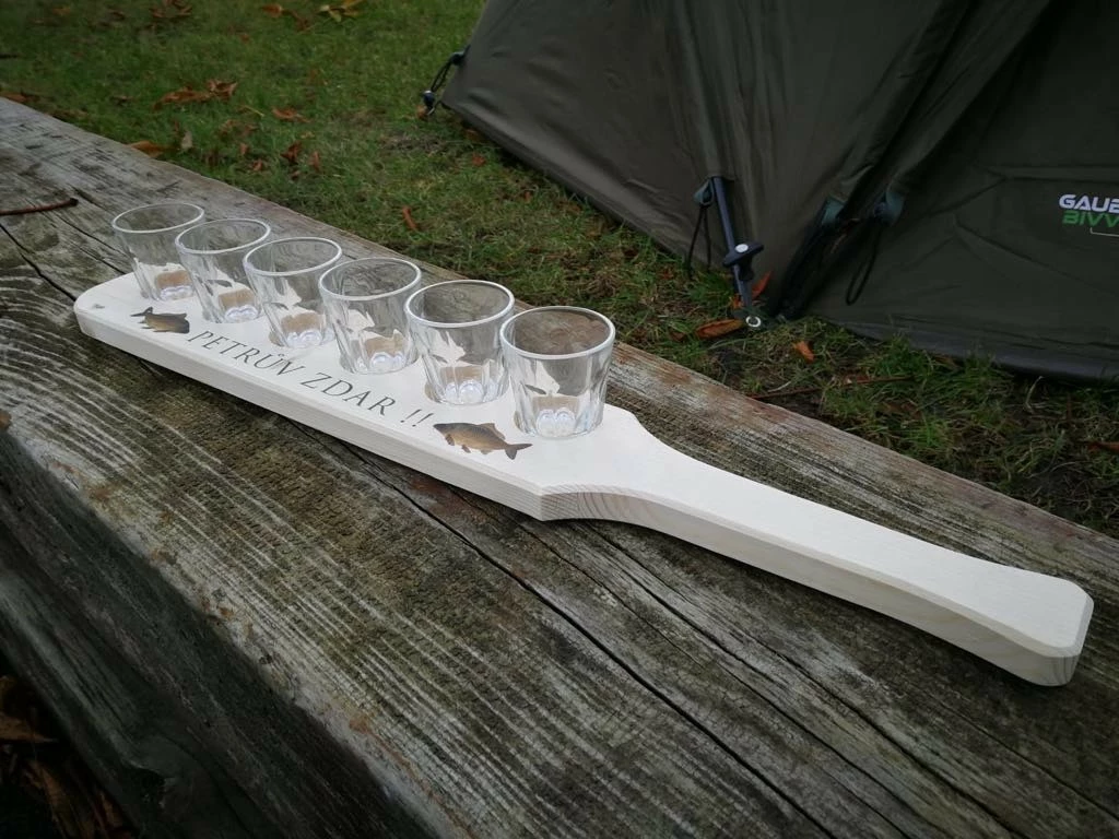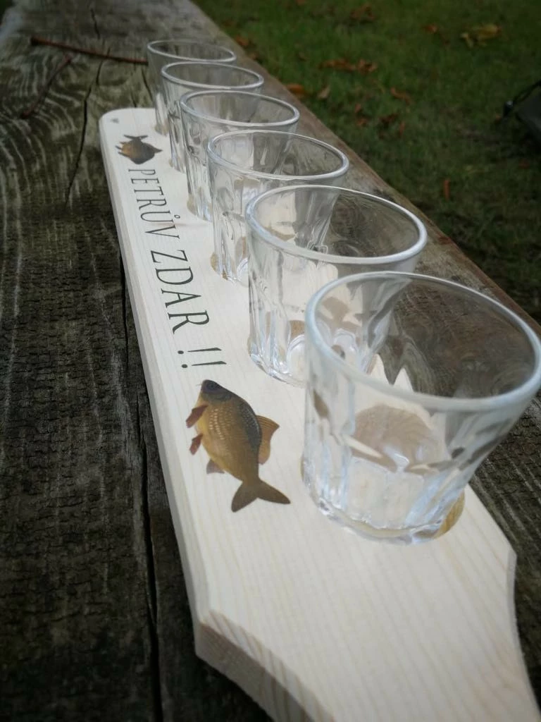 Dřevěný podnos na panáky - pro rybáře VÝPRODEJ