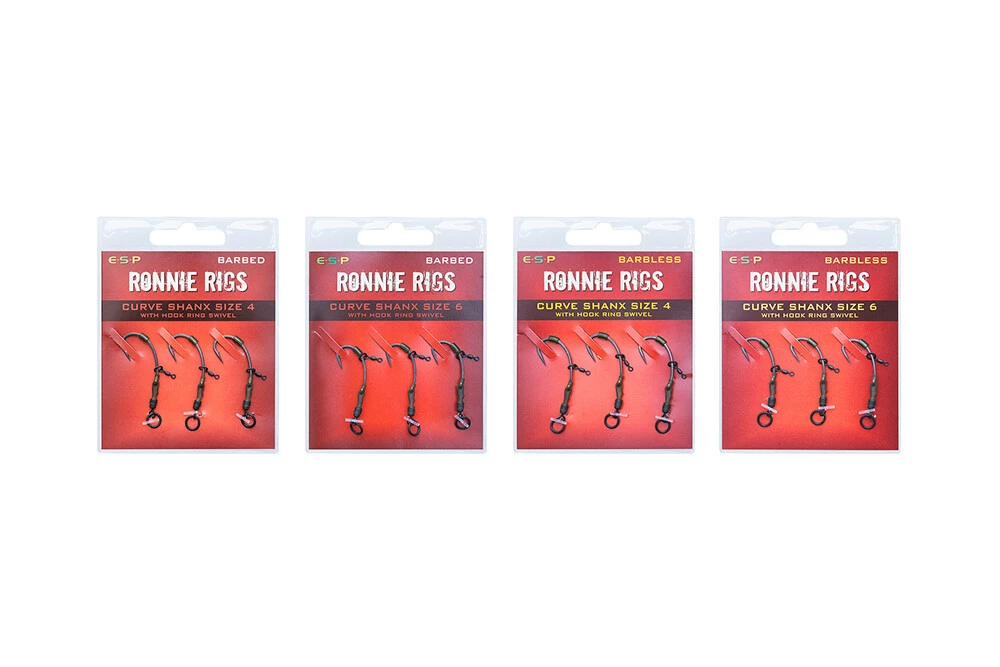 Hotové návazce Ronnie Rigs vyrobené z našich háčků Cryogen Curve Shanx. Díky volné 360° rotaci nabízejí vynikající chytlavost a perfektní pop-up prezentaci. Verze bez protihrotu. K sestavení kompletní montáže doporučujeme použít ESP návazce Quick Change Ronnie Boom.