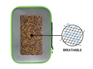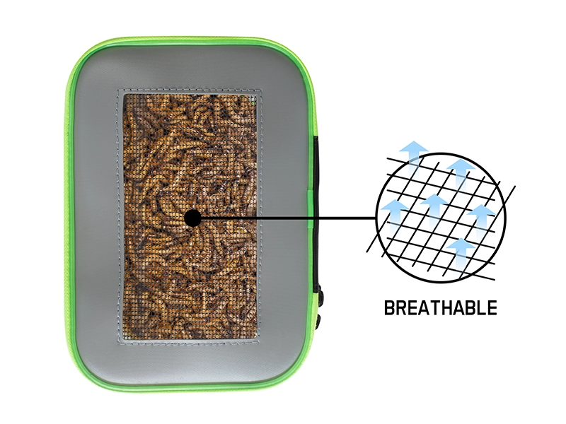 Praktická taška určená primárně pro kostní červy a jiné druhy živých návnad. Víko je tvořeno perforovanou černou síťkou, která zajistí červům dostatek vzduchu, zabrání přehřívání a tím udrží vaši návnadu déle živou a čerstvou. Taštička je černé barvy s šedým víkem, výrazným - dobře viditelným zipem, který ji dokonale uzavře a tím zamezí nechtěnému úniku červů.