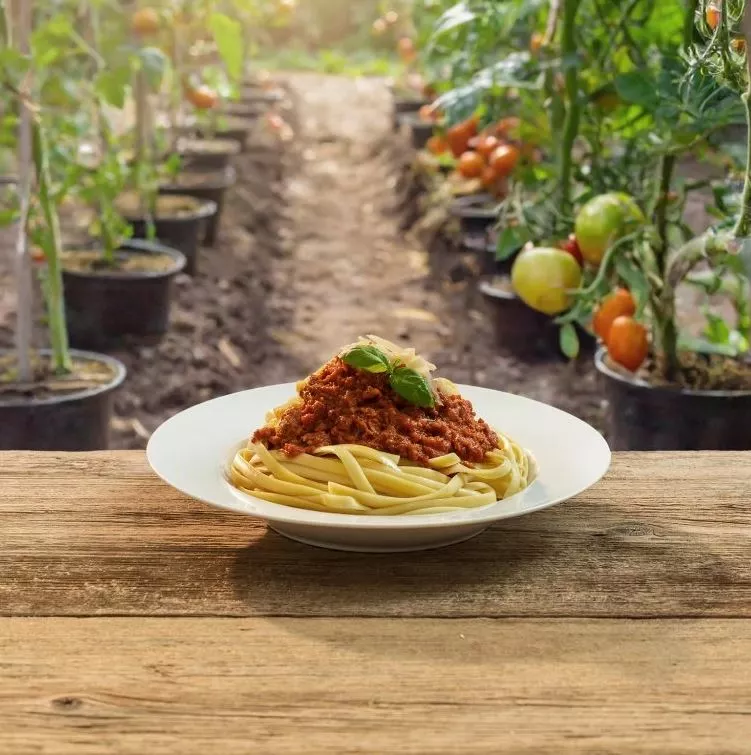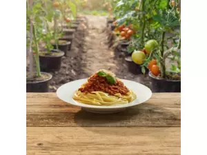 Bezmasá, italská omáčka ve veganském provedení s přírodním tempehem a chuťovou harmonií rajčat, kořenové zeleniny a středomořských bylinek.