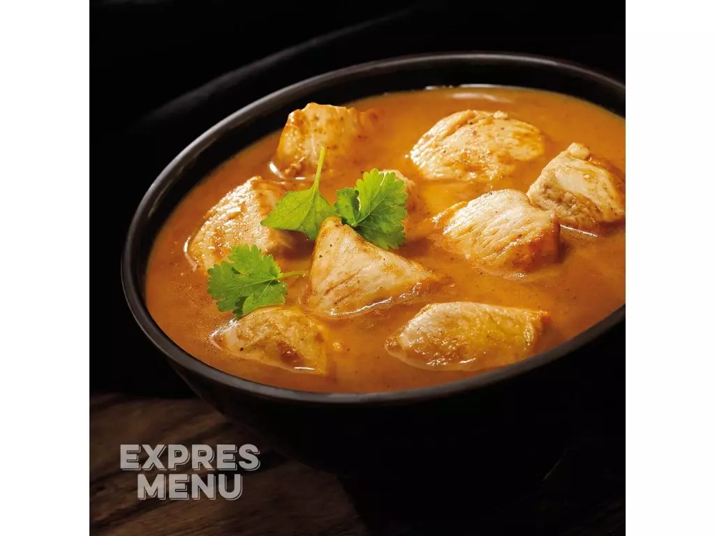 Jemná smetanová indická omáčka s kousky pečených kuřecích prsou, ochucená originálním kořením garam masala, zázvorem, kurkumou a koriandrem. Náš tip: skvěle chutná s basmati rýží. Další info
