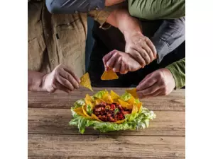 Bezmasý, lehce pikantní mexický pokrm s nahrubo nakrájeným přírodním tempehem na rajčatovém základu s červenými fazolemi, kukuřicí a červenou paprikou. Další info