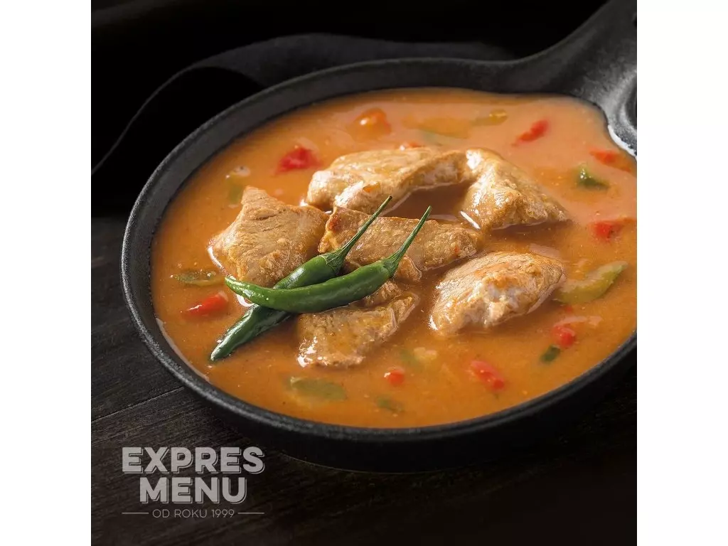 Pokrm je ideální pro milovníky ostrých jídel, kteří v omáčce ocení chuť sterilovaných okurek, kapie a feferonek. Základem jsou šťavnaté kousky vepřové kýty. Jako přílohu doporučujeme rýži. Další info