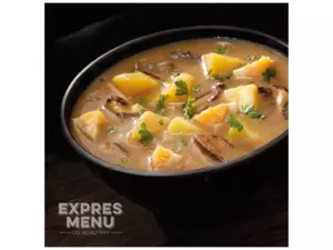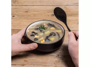 Tradiční vydatná krkonošská polévka z bezlepkového kvásku a lesních hub, která vás myšlenkami dostane do Krakonošova revíru.