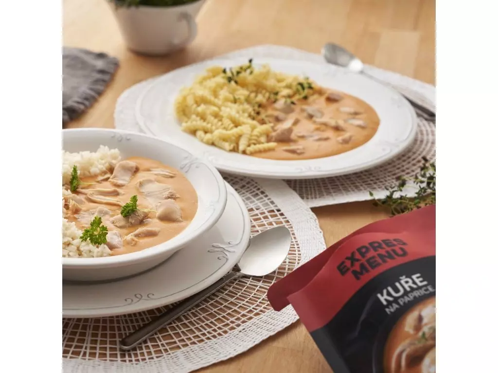 Celá nabídka EXPRES MENU je bezlepková.Pro bezlepkové zahušťování jsme si vytvořili vlastní směs kukuřičné a rýžové mouky. Mouka je lépe stravitelná, méně kalorická, a výsledek je k nepoznání od použití mouky pšeničné.