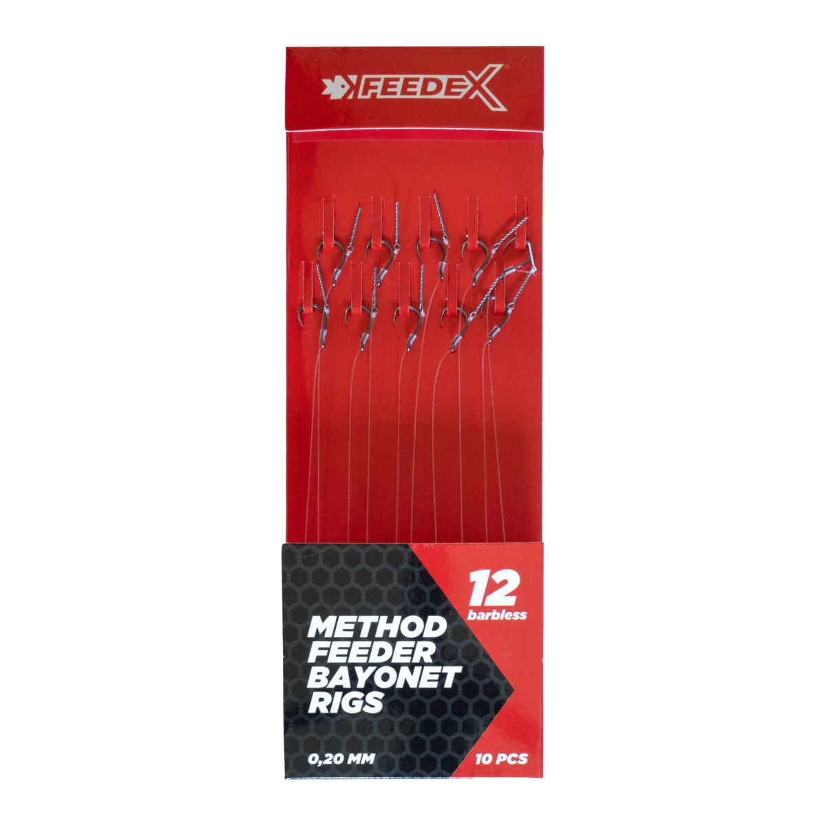 Method feeder návazce se zapichovacím bayonetem jsou určené pro malé pop-up, wafters, feeder boilie či plovoucí i potápivou kukuřici. Jsou osazené profesionálním háčkem Spec-X, kteří používají mnozí závodníci, a fluorocarbonem o délce 10 cm.