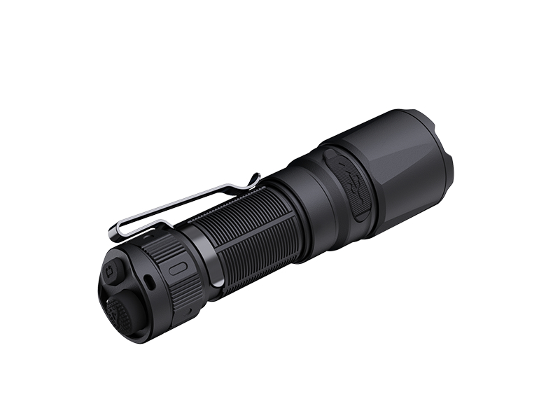 - Duální taktický vypínač na konci svítilny (funkce okamžitého zapnutí/vypnutí namáčknutím, instantní stroboskop).