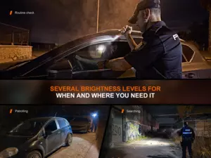 - Čtyři režimy výkonu: 1000 lumenů (0,8 hodiny) -> 350 lumenů (1,75 hodiny) -> 30 lumenů (14,5 hodiny) -> stroboskop 1000 lm s proměnlivou frekvencí.