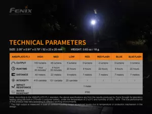 Fenix MINI-LITE nabízí celkem tři stálé režimy svícení s výdrží až 20 hodin a dva barevné blikající režimy s výdrží až 22 hodin.