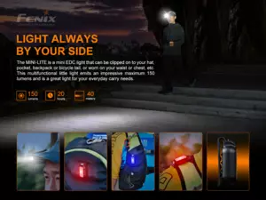 Víceučelová nabíjecí svítilna Fenix MINI-LITE (dříve známá jako Fenix E-LITE) nabízí tři úrovně jasu s dosvitem až 40 m při 150 lumenech (ANSI). Další info
