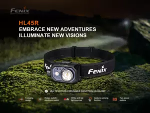 Zoomovací nabíjecí čelovka Fenix HL45R přináší světelný tok až 1000 lumenů (ANSI) a dosvit až 220 metrů a a funkcí pro bezdotykové zapínání a vypínání. Funkce Gesture-sensing umožňuje vypínat a zapínat světlo mávnutím ruky před čelovkou (funkci lze deaktivovat). Takže můžete mít při práci ruce od bláta, olejů a čehokoli a svítilna zůstane stále čistá. Napájení zajišťuje Li-ion akumulátor o kapacitě 1900 mAh, který se nabijí přes USB-C konektor přímo v čelovce. Akumulátor je možné vyjmout a v nouzi nahradit třemi běžnými bateriemi AAA (nelze je v čelovce nabíjet). Zdrojem světla je moderní LED Luminus SFT-25R, její světlo usměrňuje speciální TIR (Total Internal Reflection) optika s možností nastavení šířky světelného kuželu (funkce zoom). Navíc disponuje také červenou LED OSRAM GR QSSPA1.23, která dosahuje výkonu až 130 lumenů.