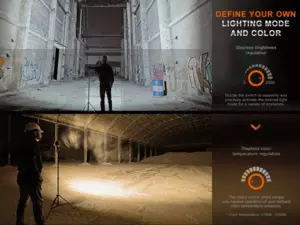 - Světelným zdrojem je vysoce jasná COB dioda s plynule nastavitelným odstínem světla 2700 - 6000 K a životností 50000 hodin.