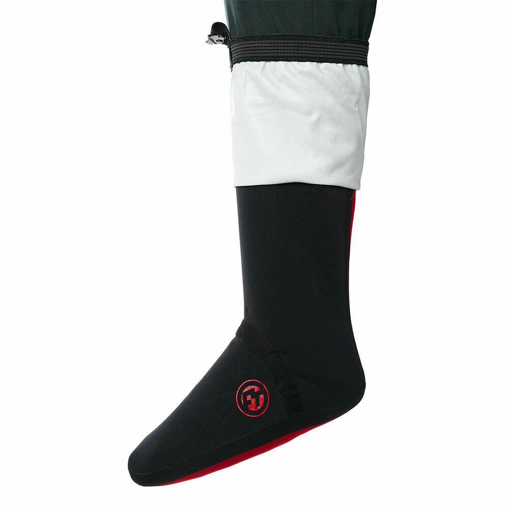 - Kalhoty jsou zakončené integrovanými 4 mm neoprenovými ponožkami se zesíleným chodidlem