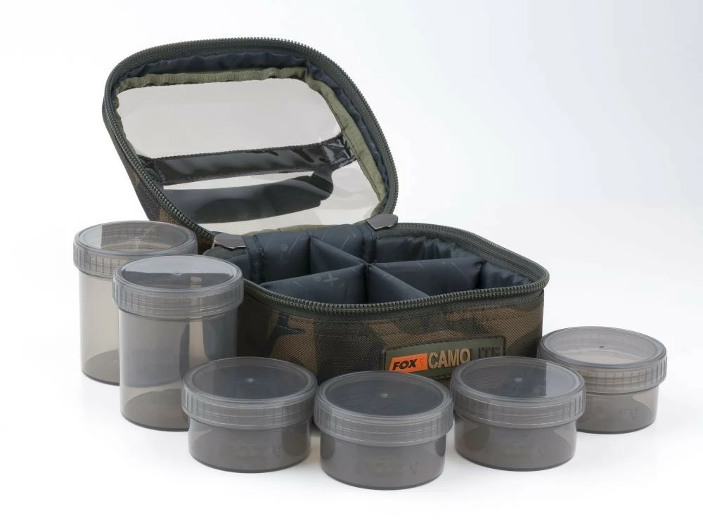 • Unikátní Fox Camo vzor • Dvojité vysoce odolné zipy • 2 velké dózy na nástrahy • 4 poloviční dózy na nástrahy • Polstrované přepážky • Tónované PVC víko pro lepší identifikaci obsahu • 100% voděodolný 500 Polyester