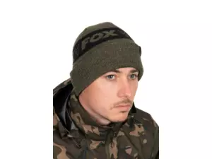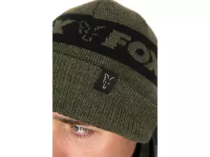 Zeleně melírovaná čepice s bambulí s černým Fox znakem