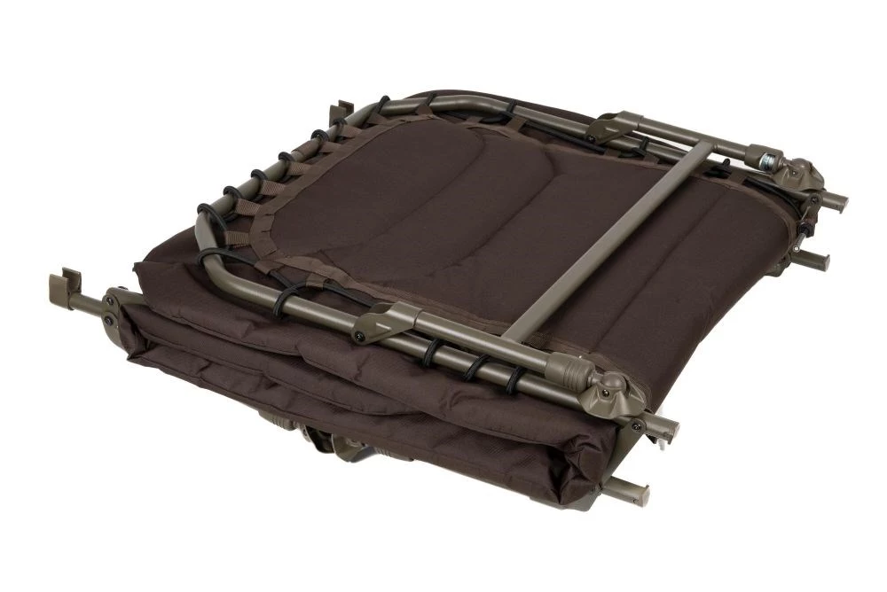 Konstrukce bez kloubů (cam-free design) poskytuje větší využitelnou šířku a spolu s plochým rámem a pohodlnou polstrovanou pěnovou matrací zajišťuje vysoký komfort při odpočinku u vody. Stabilitu i na nerovném terénu zaručuje šest výsuvných nohou s otočnými bahenními patkami.
