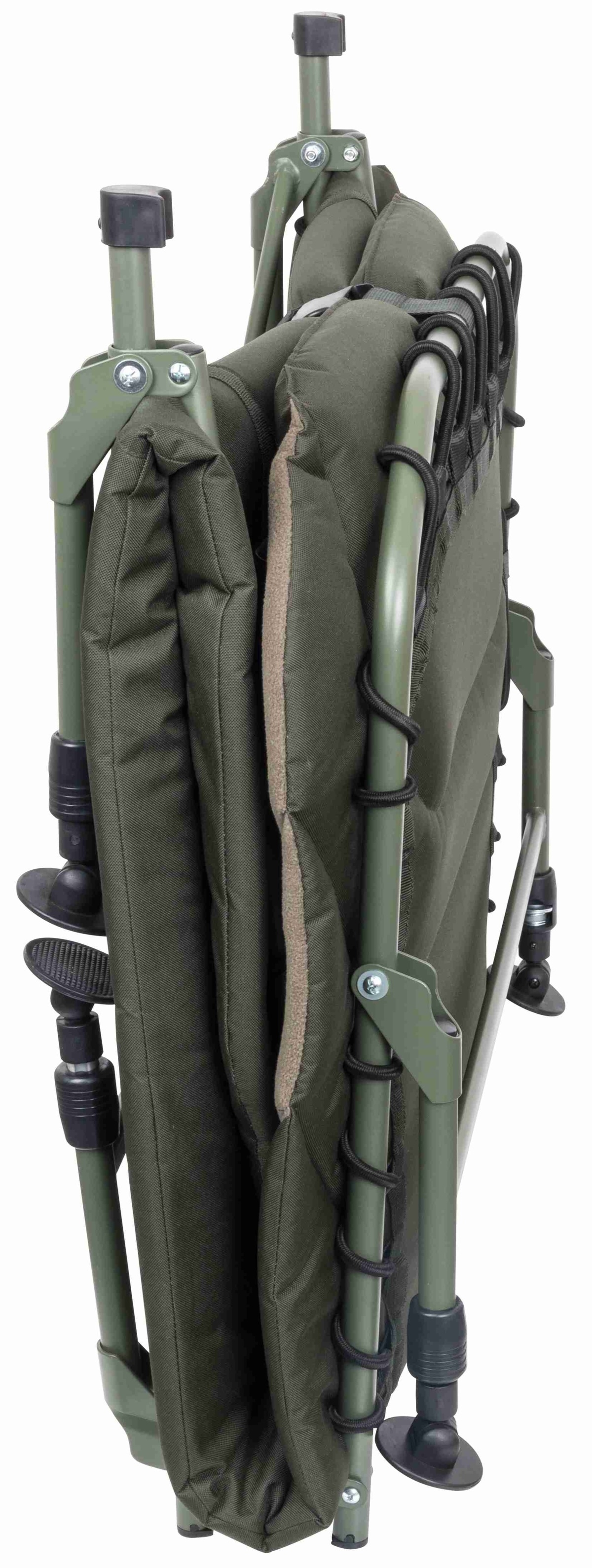 Toto lehátko bylo designováno tak, aby za nižší náklady dokázalo nabídnout vymoženosti prémiových modelů. Díky ploché konstrukci a absenci nastavovacích kloubů můžete pohodlně využívat celou šířku lehátka. Právě plochá konstrukce a její kvalitní polstrování zabezpečují vysoký komfort spánku. Každá jedna noha je nezávisle na sobě výškově nastavitelná, takže si bez problémů nastavíte plochou postel na jakémkoli terénu. Díky jednoduchým stahovacím popruhům dokážete lehátko po jeho použití složit na velmi kompaktní rozměr, takže ani transport nebude nejmenší problém.