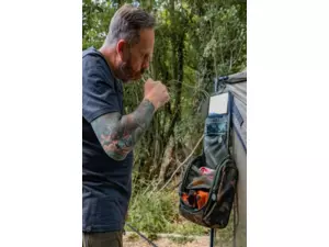 - Může být zavěšen v bivaku pomocí ocelového kroužku