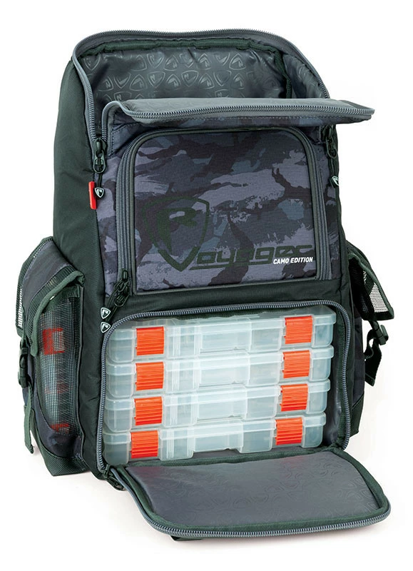 FOX RAGE Batoh Voyager Camo Rucksack + 4 boxy