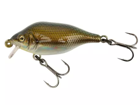 Kompaktní plovoucí nástraha s válcovitým tělem a velkou valivou akcí.