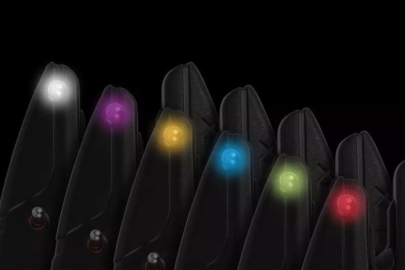 - Barva LED diod se změní zmáčknutím gumového tlačítka na zadní straně signalizátoru (jako u RX+ signalizátoru)