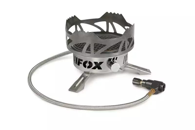 Inovovaný plynový vařič z dílny Fox. Infračervená technologie umožňuje vařičům předávat teplo při vyšších teplotách s použitím menšího množství plynu, než zvládnou tradiční vařiče. Další info