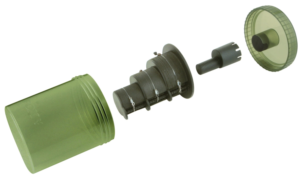 Praktický zásobník na vytváření a skladování návazců z tuhých materiálů s agresivním zahnutím na konci. Další info