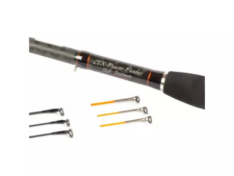 CTX Power feedery jsou stavěné především na větší jezera a řeky, nebo na daleké nahazování s velkými zátěžemi. Zachovávají si přitom skvělé vlastnosti jemnějších feederů, zdolávání si tak krásně užijete. Jsou postavené na blankách CTX s většími očky (včetně těch na chvějivé špičce), díky čemuž můžete použít i šokáč, či šňůru. Mají navíc i prodlouženou rukojeť pro extra dlouhé hody. V nabídce naleznete 2- a 3-dílné modely, přičemž dvoudílné se dělají v délkách 11‘, 12’ a 13’, trojdílné pak v délkách 12‘, 13’ a 14’. Pruty s označením Special jsou více univerzální a poradí si velmi dobře s různými podmínkami lovu. Lehce silnější modely Distance jsou pak ty pravé speciály pro potřeby dalekých hodů. Třídílný CTX Multi Power feeder je univerzální třídílný feeder se zátěží 30 až 60g. Samozřejmostí je bezlaková úprava prutů, 3 různé chvějivé špičky a nejkvalitnější komponenty. Rukojeť je korková, očka KIgan Anti-frap, sedlo Fuji VSS. Pruty jsou v kvalitních obalech, nahoře i dole uložené do neoprénových chrániček. Chvějivé špičky jsou značeny v oz (unce) a jsou z carbonu. CTX Power Feeder 11’ Special 2d. H 188g, Z 80g, F 1, 1,5, 2 CTX Power Feeder 12’ Special 2d. H 218g, Z 120g, F 2, 3, 4 CTX Power Feeder 12’ Distance 2d. H 235g, Z 160g, F 2,5, 3,5, 5 CTX Power Feeder 13’ Special 2d. H 245g, Z 120g, F 2, 3, 4 CTX Power Feeder 13’ Distance 2d. H 272g, Z 160g, F 2,5, 3,5, 5 CTX Multi Power Feeder 12’ 3d. H 200g, Z 60g, F 2, 2,5, 3 CTX Power Feeder 13’ Special 3d. H 241g, Z 120g, F 2, 3, 4 CTX Power Feeder 13’ Distance 3d. H 264g, Z 160g, F 2,5, 3,5, 5 CTX Power Feeder 14’ Special 3d. H 258g, Z 120g, F 2, 3, 4 CTX Power Feeder 14’ Distance 3d. H 275g, Z 160g, F 2,5, 3,5, 5 H - Hmotnost kompletního prutu včetně oček. Z - Maximální doporučená zátěž pro nahazování. F – Síla a materiál Feeder špiček. G – sklolaminát, bez označení - carbon