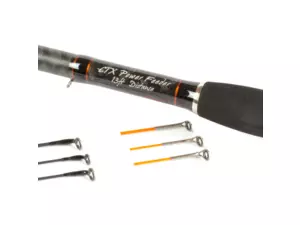 CTX Power feedery jsou stavěné především na větší jezera a řeky, nebo na daleké nahazování s velkými zátěžemi. Zachovávají si přitom skvělé vlastnosti jemnějších feederů, zdolávání si tak krásně užijete. Jsou postavené na blankách CTX s většími očky (včetně těch na chvějivé špičce), díky čemuž můžete použít i šokáč, či šňůru. Mají navíc i prodlouženou rukojeť pro extra dlouhé hody. V nabídce naleznete 2- a 3-dílné modely, přičemž dvoudílné se dělají v délkách 11‘, 12’ a 13’, trojdílné pak v délkách 12‘, 13’ a 14’. Pruty s označením Special jsou více univerzální a poradí si velmi dobře s různými podmínkami lovu. Lehce silnější modely Distance jsou pak ty pravé speciály pro potřeby dalekých hodů. Třídílný CTX Multi Power feeder je univerzální třídílný feeder se zátěží 30 až 60g. Samozřejmostí je bezlaková úprava prutů, 3 různé chvějivé špičky a nejkvalitnější komponenty. Rukojeť je korková, očka KIgan Anti-frap, sedlo Fuji VSS. Pruty jsou v kvalitních obalech, nahoře i dole uložené do neoprénových chrániček. Chvějivé špičky jsou značeny v oz (unce) a jsou z carbonu. CTX Power Feeder 11’ Special 2d. H 188g, Z 80g, F 1, 1,5, 2 CTX Power Feeder 12’ Special 2d. H 218g, Z 120g, F 2, 3, 4 CTX Power Feeder 12’ Distance 2d. H 235g, Z 160g, F 2,5, 3,5, 5 CTX Power Feeder 13’ Special 2d. H 245g, Z 120g, F 2, 3, 4 CTX Power Feeder 13’ Distance 2d. H 272g, Z 160g, F 2,5, 3,5, 5 CTX Multi Power Feeder 12’ 3d. H 200g, Z 60g, F 2, 2,5, 3 CTX Power Feeder 13’ Special 3d. H 241g, Z 120g, F 2, 3, 4 CTX Power Feeder 13’ Distance 3d. H 264g, Z 160g, F 2,5, 3,5, 5 CTX Power Feeder 14’ Special 3d. H 258g, Z 120g, F 2, 3, 4 CTX Power Feeder 14’ Distance 3d. H 275g, Z 160g, F 2,5, 3,5, 5 H - Hmotnost kompletního prutu včetně oček. Z - Maximální doporučená zátěž pro nahazování. F – Síla a materiál Feeder špiček. G – sklolaminát, bez označení - carbon