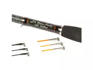CTX Power feedery jsou stavěné především na větší jezera a řeky, nebo na daleké nahazování s velkými zátěžemi. Zachovávají si přitom skvělé vlastnosti jemnějších feederů, zdolávání si tak krásně užijete. Jsou postavené na blankách CTX s většími očky (včetně těch na chvějivé špičce), díky čemuž můžete použít i šokáč, či šňůru. Mají navíc i prodlouženou rukojeť pro extra dlouhé hody. V nabídce naleznete 2- a 3-dílné modely, přičemž dvoudílné se dělají v délkách 11‘, 12’ a 13’, trojdílné pak v délkách 12‘, 13’ a 14’. Pruty s označením Special jsou více univerzální a poradí si velmi dobře s různými podmínkami lovu. Lehce silnější modely Distance jsou pak ty pravé speciály pro potřeby dalekých hodů. Třídílný CTX Multi Power feeder je univerzální třídílný feeder se zátěží 30 až 60g. Samozřejmostí je bezlaková úprava prutů, 3 různé chvějivé špičky a nejkvalitnější komponenty. Rukojeť je korková, očka KIgan Anti-frap, sedlo Fuji VSS. Pruty jsou v kvalitních obalech, nahoře i dole uložené do neoprénových chrániček. Chvějivé špičky jsou značeny v oz (unce) a jsou z carbonu. CTX Power Feeder 11’ Special 2d. H 188g, Z 80g, F 1, 1,5, 2 CTX Power Feeder 12’ Special 2d. H 218g, Z 120g, F 2, 3, 4 CTX Power Feeder 12’ Distance 2d. H 235g, Z 160g, F 2,5, 3,5, 5 CTX Power Feeder 13’ Special 2d. H 245g, Z 120g, F 2, 3, 4 CTX Power Feeder 13’ Distance 2d. H 272g, Z 160g, F 2,5, 3,5, 5 CTX Multi Power Feeder 12’ 3d. H 200g, Z 60g, F 2, 2,5, 3 CTX Power Feeder 13’ Special 3d. H 241g, Z 120g, F 2, 3, 4 CTX Power Feeder 13’ Distance 3d. H 264g, Z 160g, F 2,5, 3,5, 5 CTX Power Feeder 14’ Special 3d. H 258g, Z 120g, F 2, 3, 4 CTX Power Feeder 14’ Distance 3d. H 275g, Z 160g, F 2,5, 3,5, 5 H - Hmotnost kompletního prutu včetně oček. Z - Maximální doporučená zátěž pro nahazování. F – Síla a materiál Feeder špiček. G – sklolaminát, bez označení - carbon