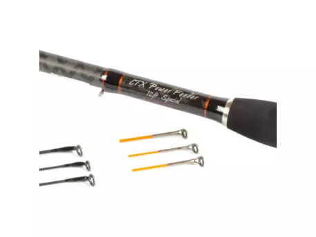 CTX Power feedery jsou stavěné především na větší jezera a řeky, nebo na daleké nahazování s velkými zátěžemi. Zachovávají si přitom skvělé vlastnosti jemnějších feederů, zdolávání si tak krásně užijete. Jsou postavené na blankách CTX s většími očky (včetně těch na chvějivé špičce), díky čemuž můžete použít i šokáč, či šňůru. Mají navíc i prodlouženou rukojeť pro extra dlouhé hody. V nabídce naleznete 2- a 3-dílné modely, přičemž dvoudílné se dělají v délkách 11‘, 12’ a 13’, trojdílné pak v délkách 12‘, 13’ a 14’. Pruty s označením Special jsou více univerzální a poradí si velmi dobře s různými podmínkami lovu. Lehce silnější modely Distance jsou pak ty pravé speciály pro potřeby dalekých hodů. Třídílný CTX Multi Power feeder je univerzální třídílný feeder se zátěží 30 až 60g. Samozřejmostí je bezlaková úprava prutů, 3 různé chvějivé špičky a nejkvalitnější komponenty. Rukojeť je korková, očka KIgan Anti-frap, sedlo Fuji VSS. Pruty jsou v kvalitních obalech, nahoře i dole uložené do neoprénových chrániček. Chvějivé špičky jsou značeny v oz (unce) a jsou z carbonu. CTX Power Feeder 11’ Special 2d. H 188g, Z 80g, F 1, 1,5, 2 CTX Power Feeder 12’ Special 2d. H 218g, Z 120g, F 2, 3, 4 CTX Power Feeder 12’ Distance 2d. H 235g, Z 160g, F 2,5, 3,5, 5 CTX Power Feeder 13’ Special 2d. H 245g, Z 120g, F 2, 3, 4 CTX Power Feeder 13’ Distance 2d. H 272g, Z 160g, F 2,5, 3,5, 5 CTX Multi Power Feeder 12’ 3d. H 200g, Z 60g, F 2, 2,5, 3 CTX Power Feeder 13’ Special 3d. H 241g, Z 120g, F 2, 3, 4 CTX Power Feeder 13’ Distance 3d. H 264g, Z 160g, F 2,5, 3,5, 5 CTX Power Feeder 14’ Special 3d. H 258g, Z 120g, F 2, 3, 4 CTX Power Feeder 14’ Distance 3d. H 275g, Z 160g, F 2,5, 3,5, 5 H - Hmotnost kompletního prutu včetně oček. Z - Maximální doporučená zátěž pro nahazování. F – Síla a materiál Feeder špiček. G – sklolaminát, bez označení - carbon