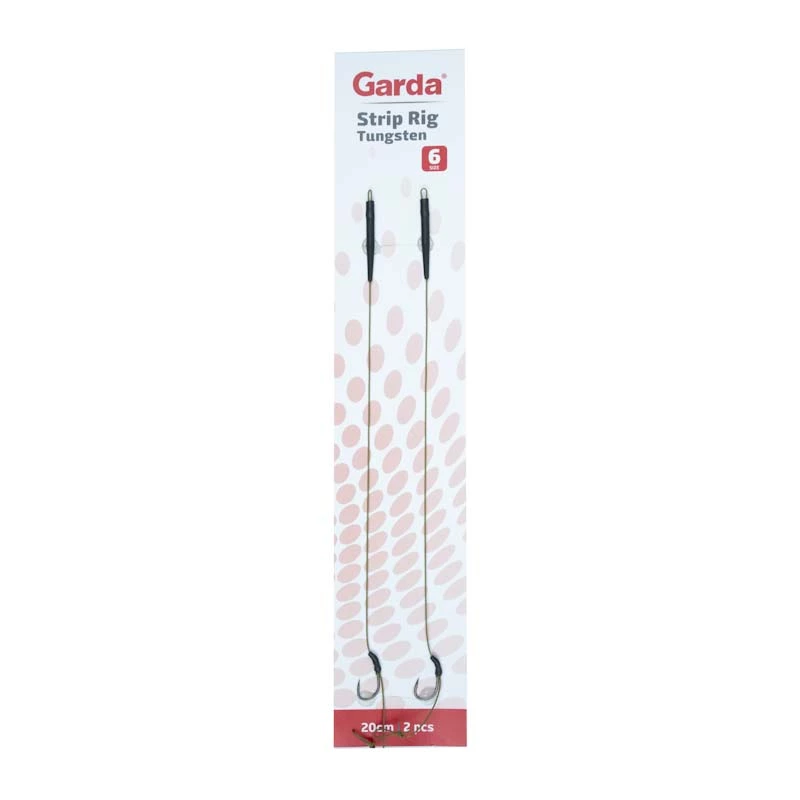 Garda Strip Tungsten rig je velmi účinný a univerzální návazec na montáž s plovoucím boilie, vyváženým boilie i boilie na dno. Při použití plovoucího boilie je nutné přidat na návazec Garda Carp Shot 0,9g nebo jiné protizávaží. Vyrábí se ve variantě s protihrotem i bez protihrotu.