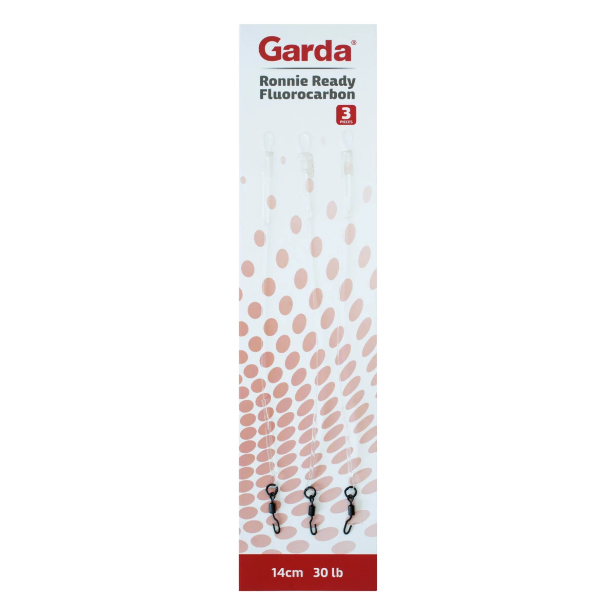 Hotový návazec na Ronnie rig z prvotřídního fluorocarbonu, do kterého stačí už jen na obratlík připojit Garda háček, například Ultra Sharp, a zajistit smršťovací hadičkou nebo Garda tungstenovou Ronnie krytkou. Na druhém konci nasaďte krytku proti zamotání a připojte k montáži.
