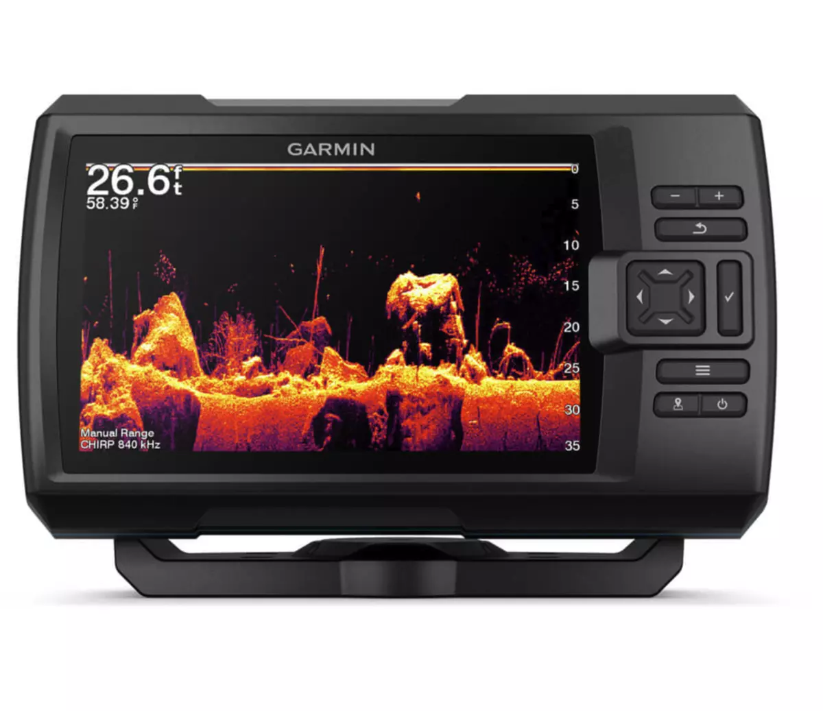 S přístrojem STRIKER Vivid 7cv se sonarovou sondou si můžete přizpůsobit barevné zobrazení na displeji a pomocí sonaru pak sledovat ryby a objekty pod hladinou v maximálních detailech.