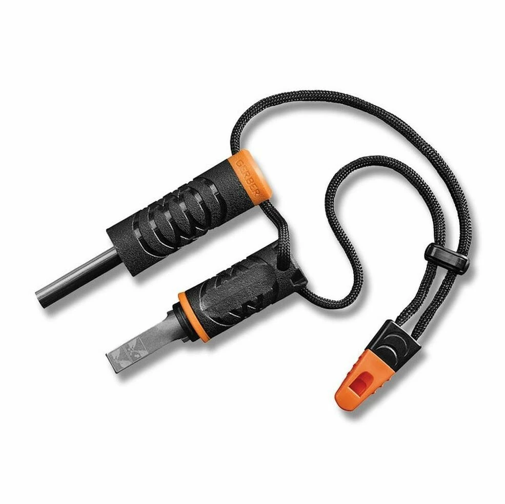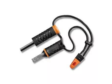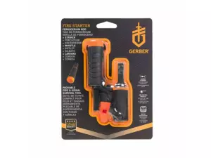 V drobném těle podpalovače Gerber Fire Starter se skrývá křesadlo, ferroceriová tyčinka, vodotěsný prostor pro troud a hlasitá píšťalka. Podpalovač funguje i vlhký. Další info