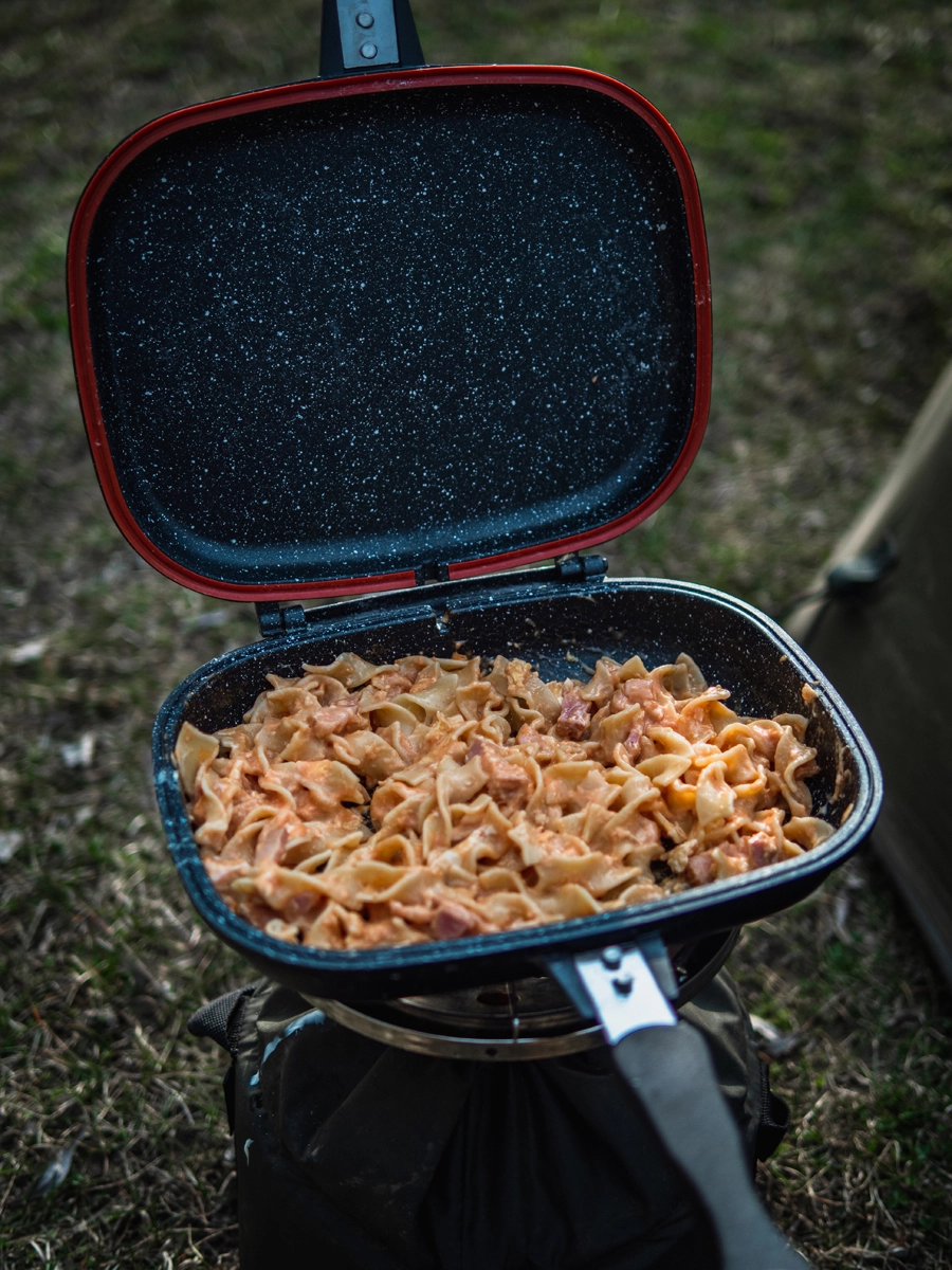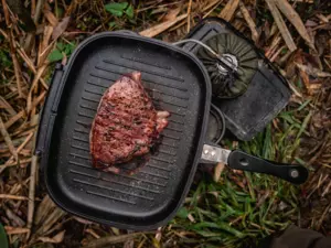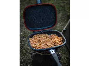 Oboustranná pánvička od Giants fishing s nepřilnavým povrchem Non-Stick , silikonovým těsněním a v krásném designu, je důležitou součástí každého rybáře kuchaře.