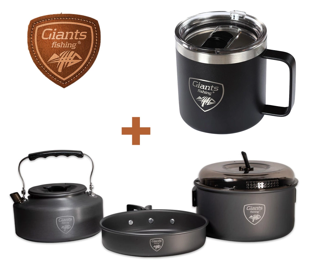 Giants fishing Akční set Sada nádobí s konvičkou + Nerezový thermo hrnek 400ml