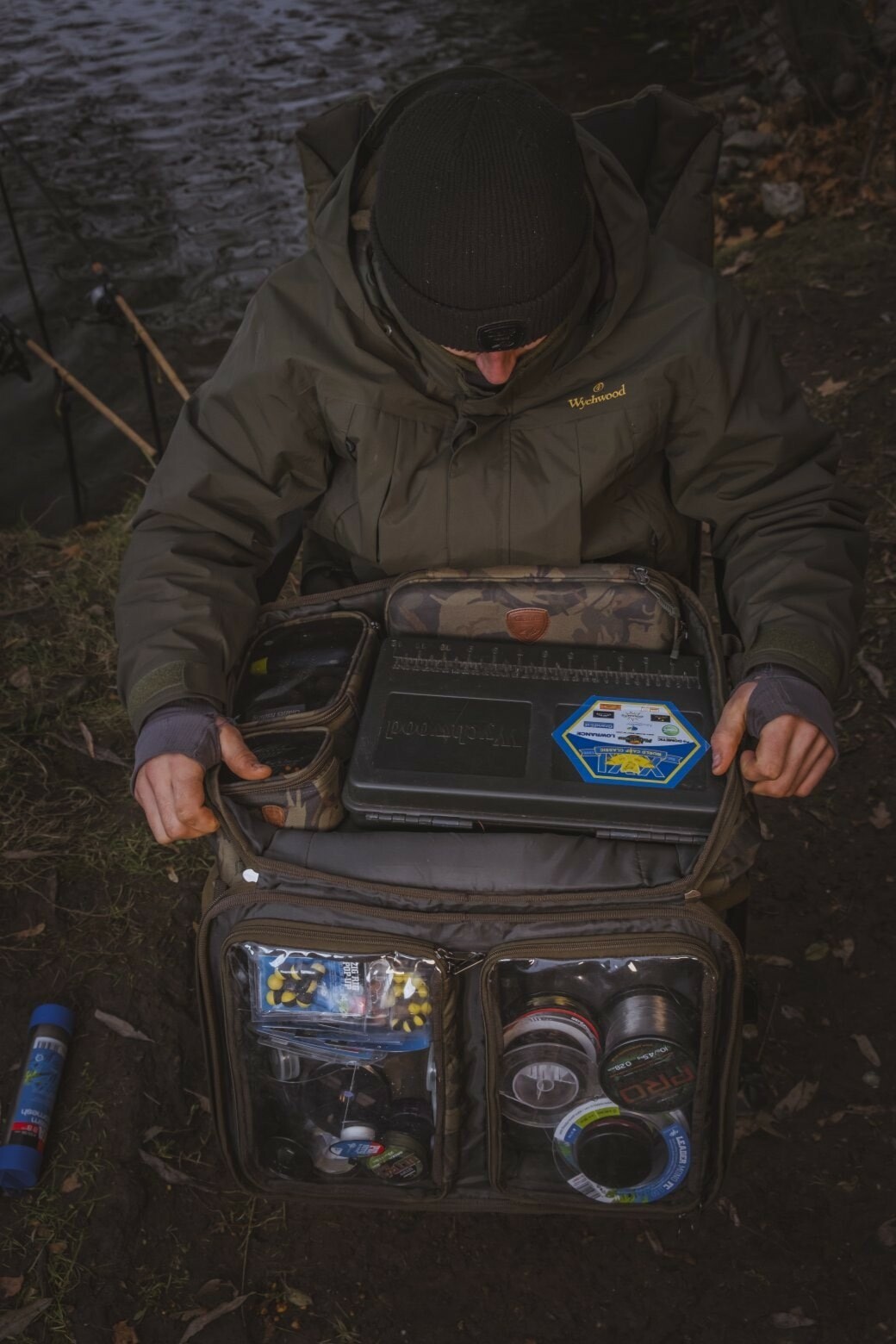 Propracovaný kompaktní batoh, který je určen pro kapraře s maximálním vnitřním využitím a po bocích osazen praktickými úchyty na vidličky.