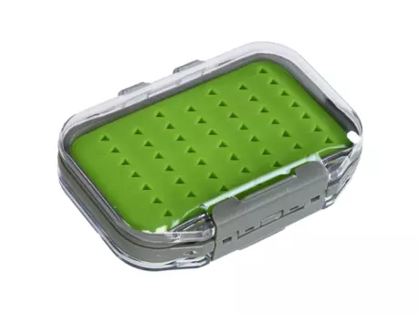 Krabička je vybavena mikro štěrbinami ve velmi husté silikonové výplni, která je vhodná pro všechny velikosti a druhy mušek. Vypouklá dvířka krabičky zajistí, že se mušky nezmáčknou a nepoškodí. Krabičky mají pevné a odolné tělo, jsou rozbití odolné a dvojité panty dovolují otevřít krabičku na 180°. Oboustranné otevírání maximalizuje kapacitu a využívá všechen prostor krabičky. Dvířka jsou průhledná, aby byly mušky dobře vidět, pro lepší orientaci a rychlý výběr. Těsnění ze silikonové gumy zajišťuje absolutní vodotěsnost. Rozměry: 11 x 8 x 3,3cm